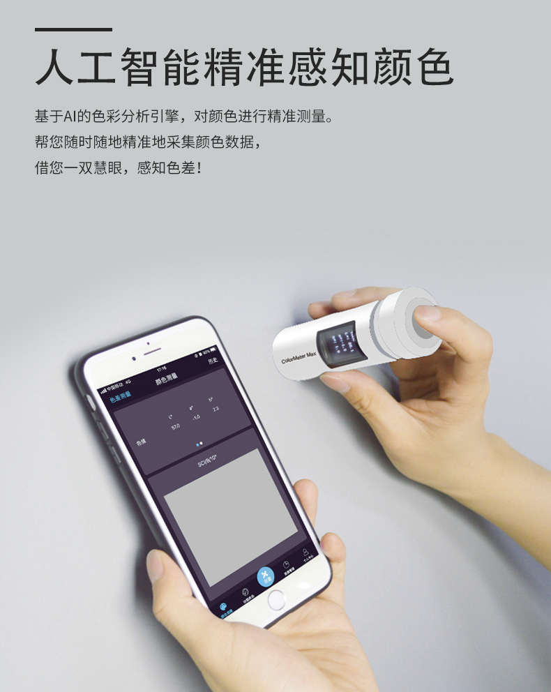 色差寶ColorMeter MAX是色差寶系列的增強版儀器,是色差儀*域一款強大的測色工具,優秀的性能配置,讓色彩測量更準確;與安卓或IOS設備無線連接,極大的拓展了顏色測量儀器的應用邊界;它將帶您進入色彩管理新世界,可替代印刷、涂料、紡織等色卡,實現顏色讀取、色卡查找功能;儀器可過G家二級計量,測量穩定性小于等于0.05,優于色差寶ColorMeter Pro。