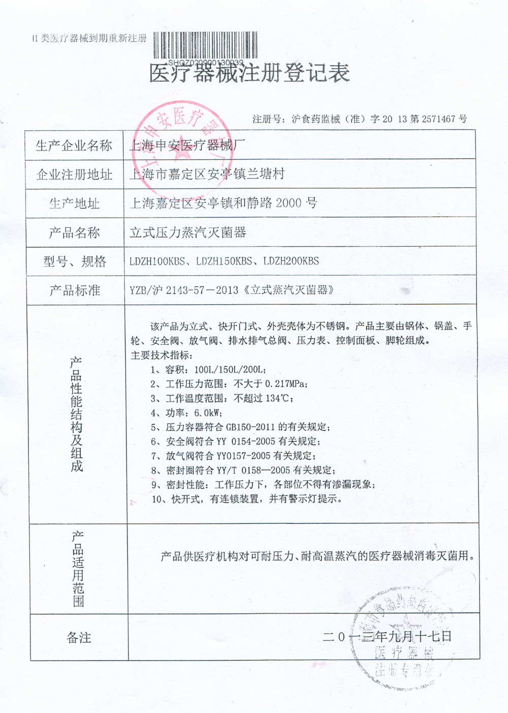 本品屬于壓力容器受控產品,符合國家對壓力容器設計與制作的相關規定,并取得了食藥監產品注冊證和消毒產品衛生許可證。其結構先進可靠,具有快捷簡便的操作方式和功能齊全的控制系統,在安全控制上;具有超壓自泄、斷水保護、超溫自控的數套安全聯鎖的裝置。本品操作系統采用先進的微機自動處理技術,滅菌運行過程實行微機自動控制,操控臺上的液晶顯示窗顯示整個滅菌動態和功能運行情況,產品主要部件采用優質不銹鋼材料精制而成,滅菌指標達到國家醫用手術級標準,是各醫療衛生、大專院校、食品化工、生物科研等單位對器械、敷料、藥液、食品器皿、培養基等物品進行消毒滅菌的理想產品。