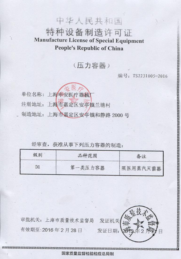 本品屬于壓力容器受控產(chǎn)品,符合國(guó)家對(duì)壓力容器設(shè)計(jì)與制作的相關(guān)規(guī)定,并取得了食藥監(jiān)產(chǎn)品注冊(cè)證和消毒產(chǎn)品衛(wèi)生許可證,是我廠研制開發(fā)的新一代智能型立式壓力蒸汽滅菌器,其結(jié)構(gòu)先進(jìn)可靠,具有快捷簡(jiǎn)便的操作方式和功能齊全的控制系統(tǒng),在安全控制上;具有超壓自泄、斷水保護(hù)、超溫自控的數(shù)套安全聯(lián)鎖的裝置。本品操作系統(tǒng)采用先進(jìn)的微機(jī)自動(dòng)處理技術(shù),滅菌運(yùn)行過(guò)程實(shí)行微機(jī)自動(dòng)控制,操控臺(tái)上的液晶顯示窗顯示整個(gè)滅菌動(dòng)態(tài)和功能運(yùn)行情況,產(chǎn)品主要部件采用優(yōu)質(zhì)不銹鋼材料精制而成,滅菌指標(biāo)達(dá)到國(guó)家醫(yī)用手術(shù)級(jí)標(biāo)準(zhǔn),是各醫(yī)療衛(wèi)生、大專院校、食品化工、生物科研等單位對(duì)器械、敷料、藥液、食品器皿、培養(yǎng)基等物品進(jìn)行消毒滅菌的理想產(chǎn)品。