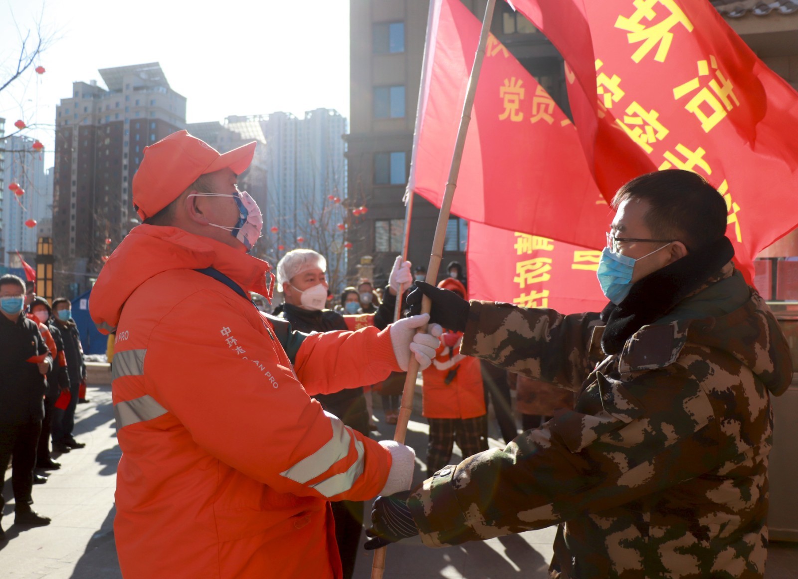 呼和浩特市玉泉區(qū)昭君路街道秋實(shí)璟峯匯小區(qū)出現(xiàn)1例確診病例后,為有效遏制疫情繼續(xù)擴(kuò)散,2月4日上午,秋實(shí)璟峯匯成立疫情防控臨時(shí)黨支部和2支疫情防控突擊隊(duì),同時(shí)對(duì)突擊隊(duì)進(jìn)行授旗。